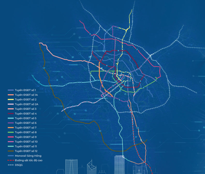 Theo quy hoạch, Hà Nội sẽ phát triển 14 tuyến đường sắt đô thị phủ khắp khu vực nội thành và các vùng ngoại vi.