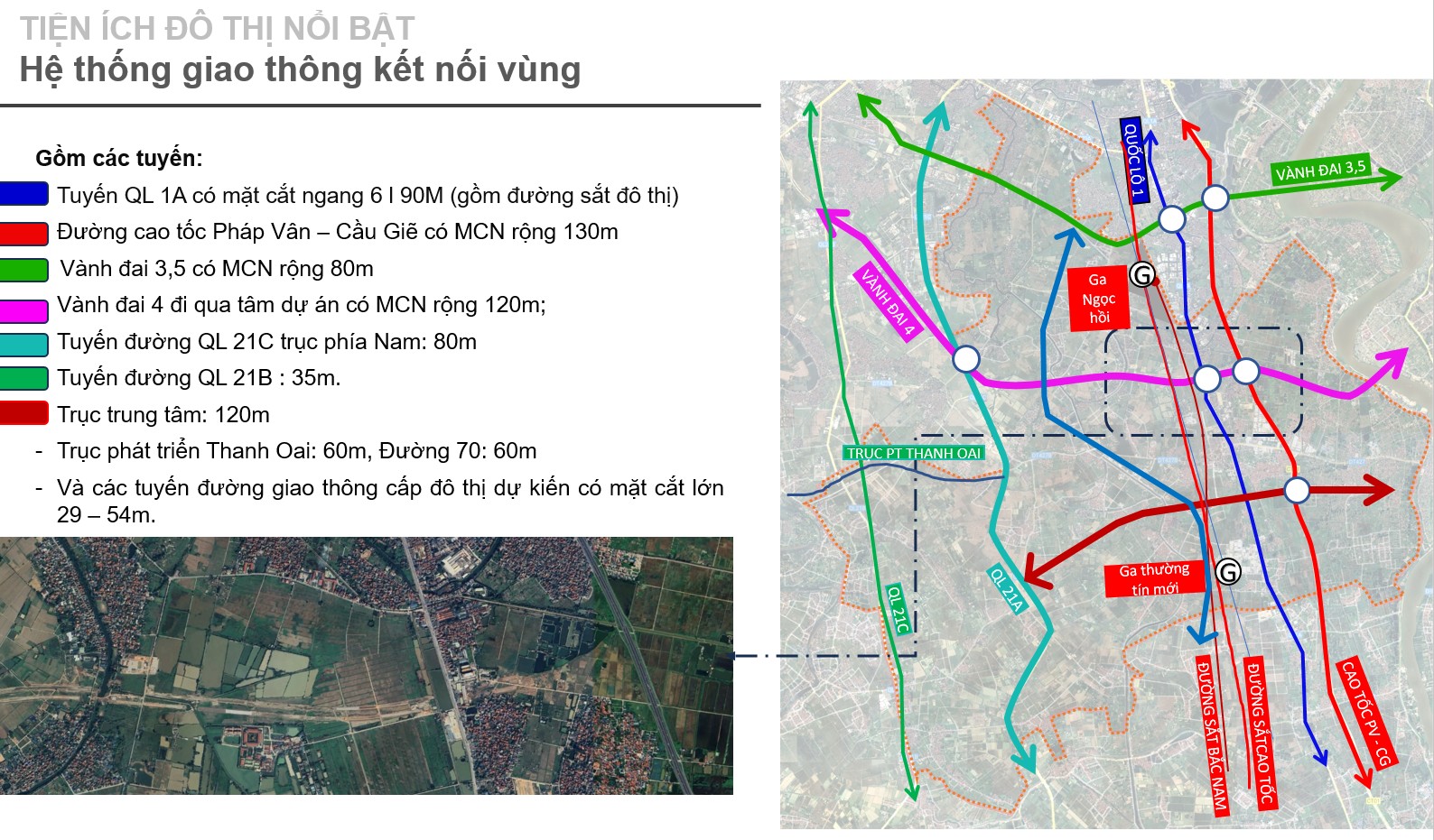 Đường bộ: Vành đai 3,5 – Vành đai 4 – QL1A – QL21C – Cao tốc Pháp Vân – Cầu Giẽ – Trục Thanh Oai.