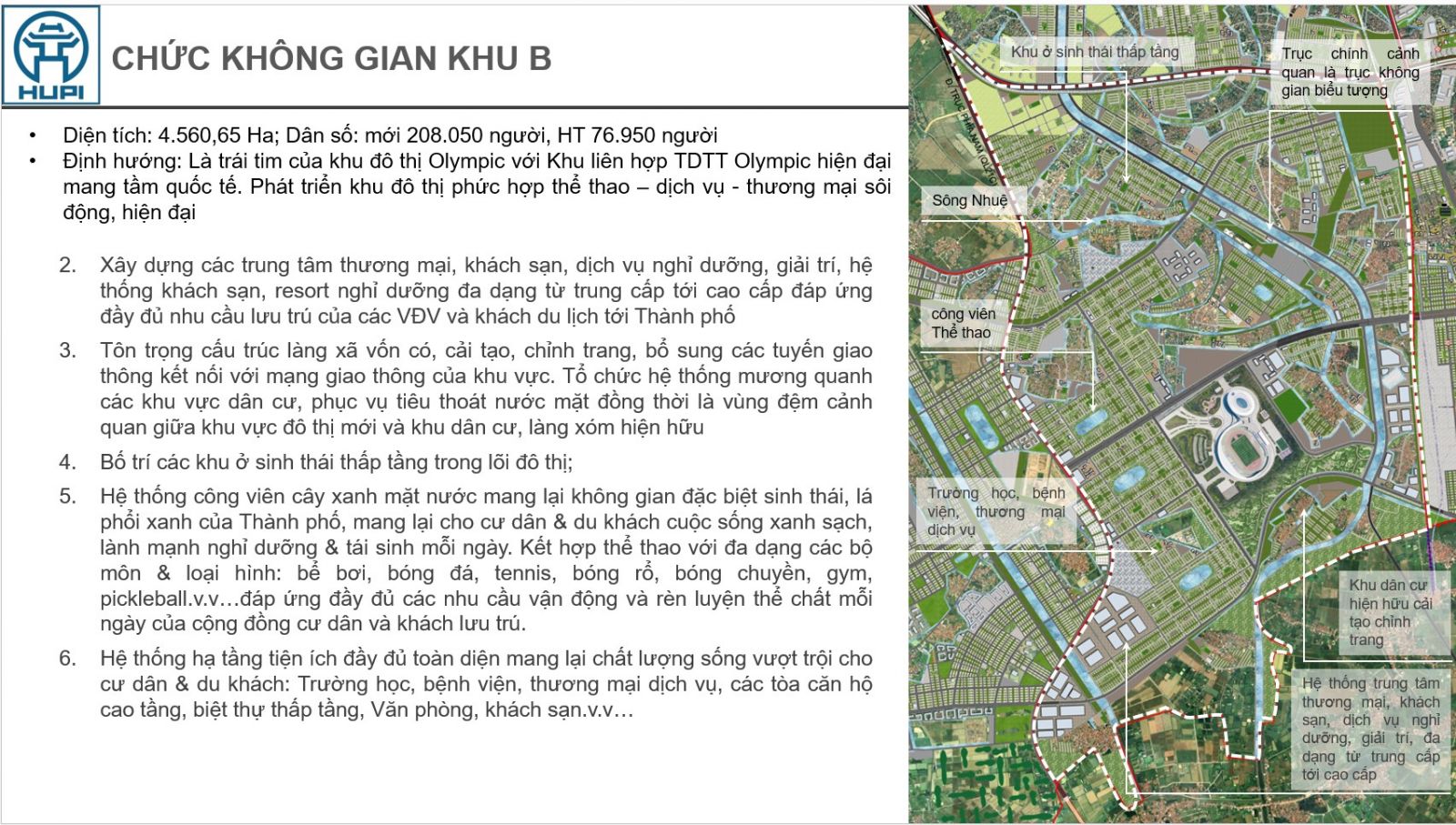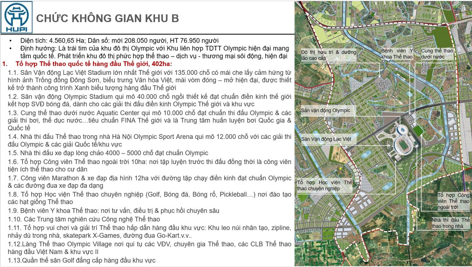 Khu B là trái tim của toàn khu đô thị Olympic 16.081 ha, có quy mô dân số dự kiến toàn khu lên tới 1,15 triệu người.