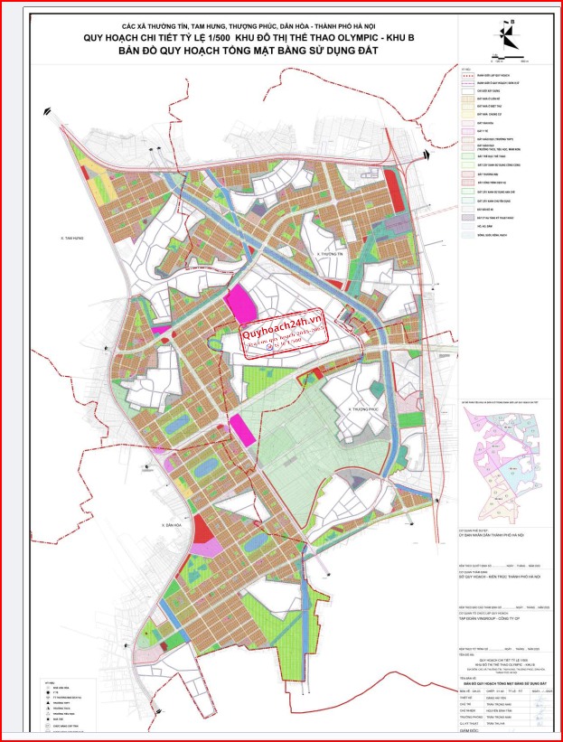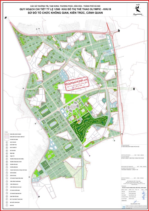 Bản đồ quy hoạch 1/500 Vin Olympic (tỷ lệ 1/500) cho thấy cấu trúc đô thị được thiết kế dựa trên tư duy hiện đại, ưu tiên không gian mở, giao thông chiến lược và chức năng đô thị bổ trợ lẫn nhau. Dưới đây là phân tích chi tiết từng thành phần: