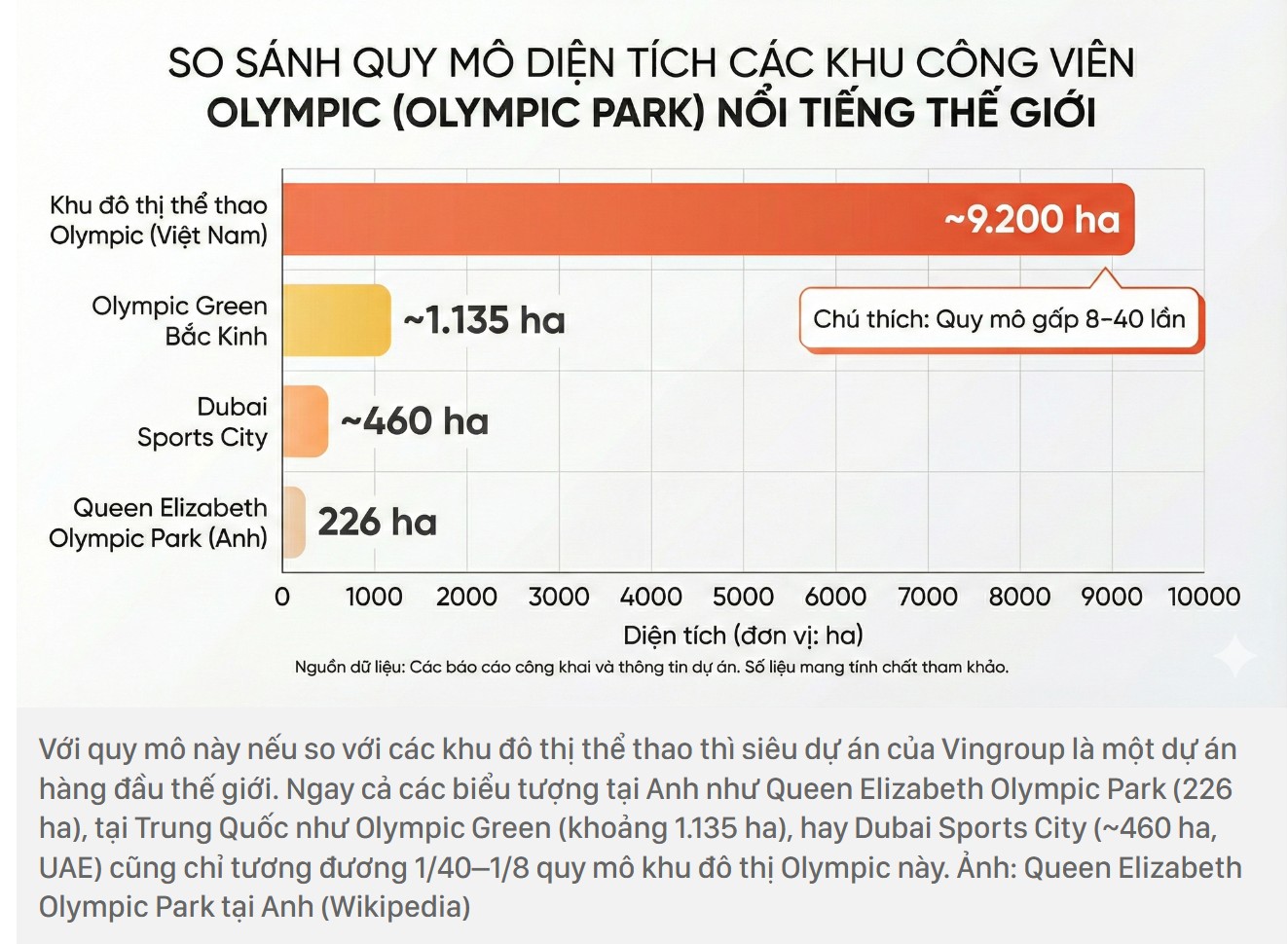 Nếu so sánh quy mô, dự án Olympic của Vingroup vượt xa nhiều khu Olympic nổi tiếng trên thế giới: