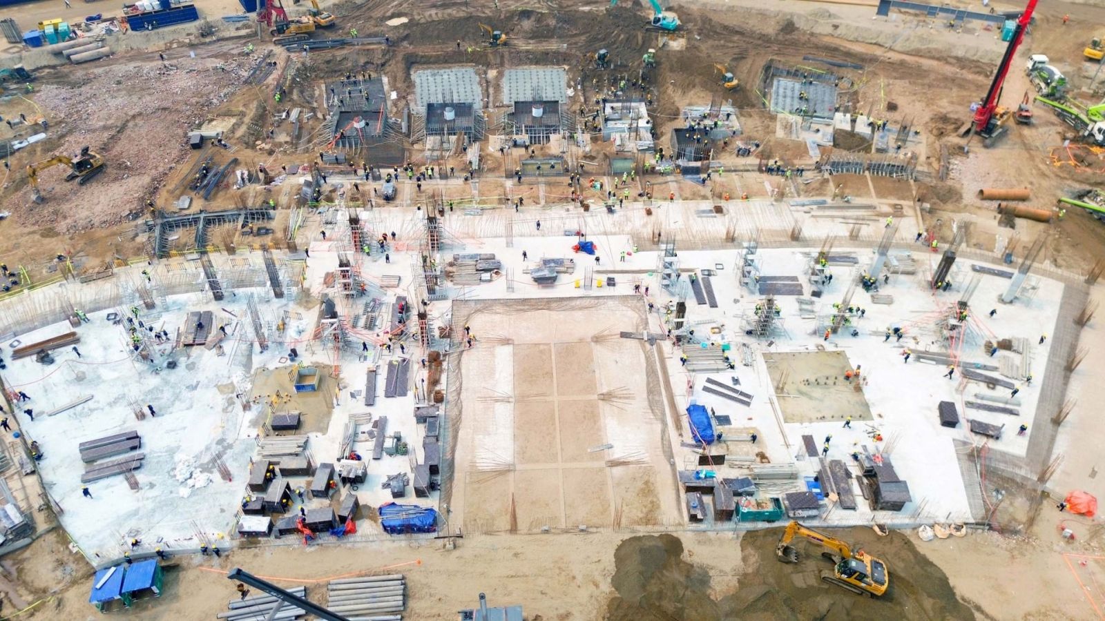 Sau hơn 3 tháng kể từ ngày khởi công, khu vực xây dựng sân vận động đang ghi nhận tiến độ triển khai cực kỳ khẩn trương.