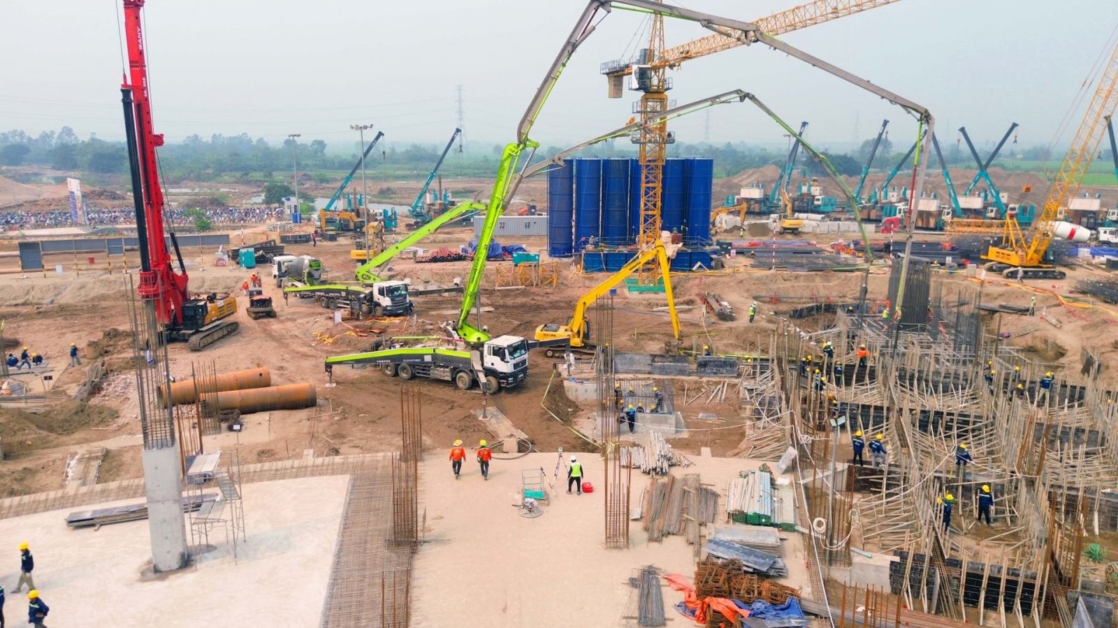 Lưu lượng xe vận chuyển vật liệu ra vào công trường diễn ra liên tục ngày đêm, cho thấy quyết tâm đẩy nhanh tiến độ của chủ đầu tư.